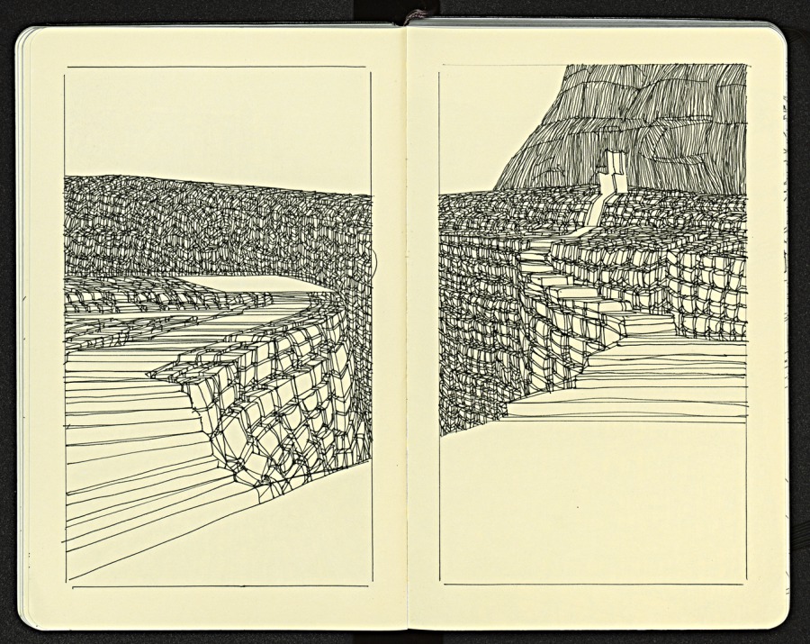 This sketchbook 1/2010 is part of a twelve-year project: Space Experiments, documented with the main focuses: archaic space, space as territory, space as landscape,