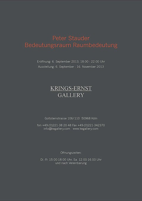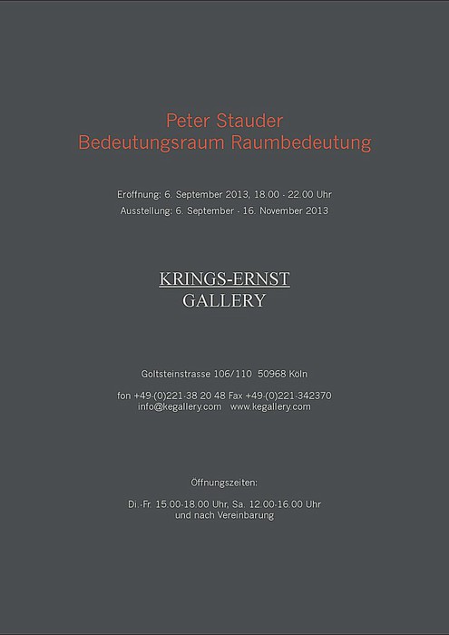 Köln, Krings-Ernst-Gallery, Ausstellung Bedeutungsraum Raumbedeutung, 6.9. - 16.11.2013